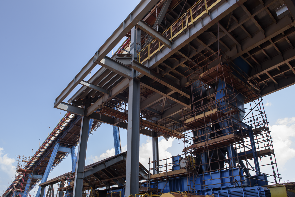 Fotografia institucional para mostrar a estrutura metálica construída pela empresa Tecnokor, que atende a Vale em São Luís Maranhão.